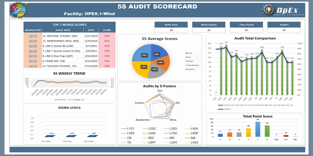We monitor essential metrics such as throughput, Overall Equipment Effectiveness (OEE), and quality performance to identify inefficiencies and track the progress of Lean initiatives, including 5S and waste reduction.